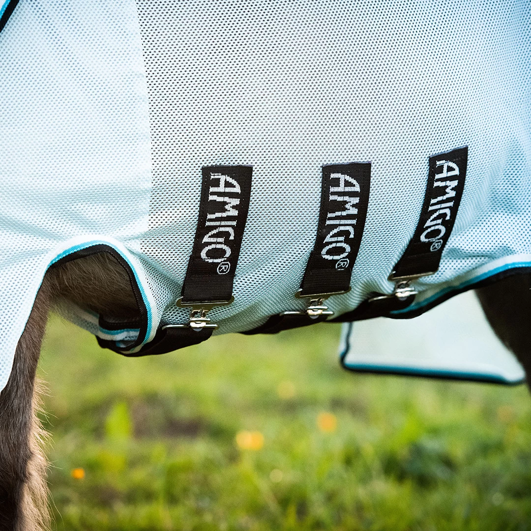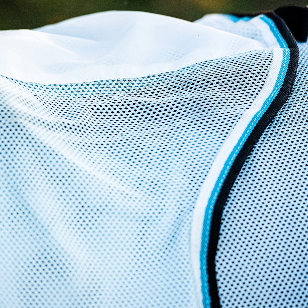 The fly sheet is made from durable polyester net and has a polyester lining to prevent mane, tail and shoulder rubs. It offers superior fly defense to your petite equine with the added bonus of UV protection and a detachable hood.