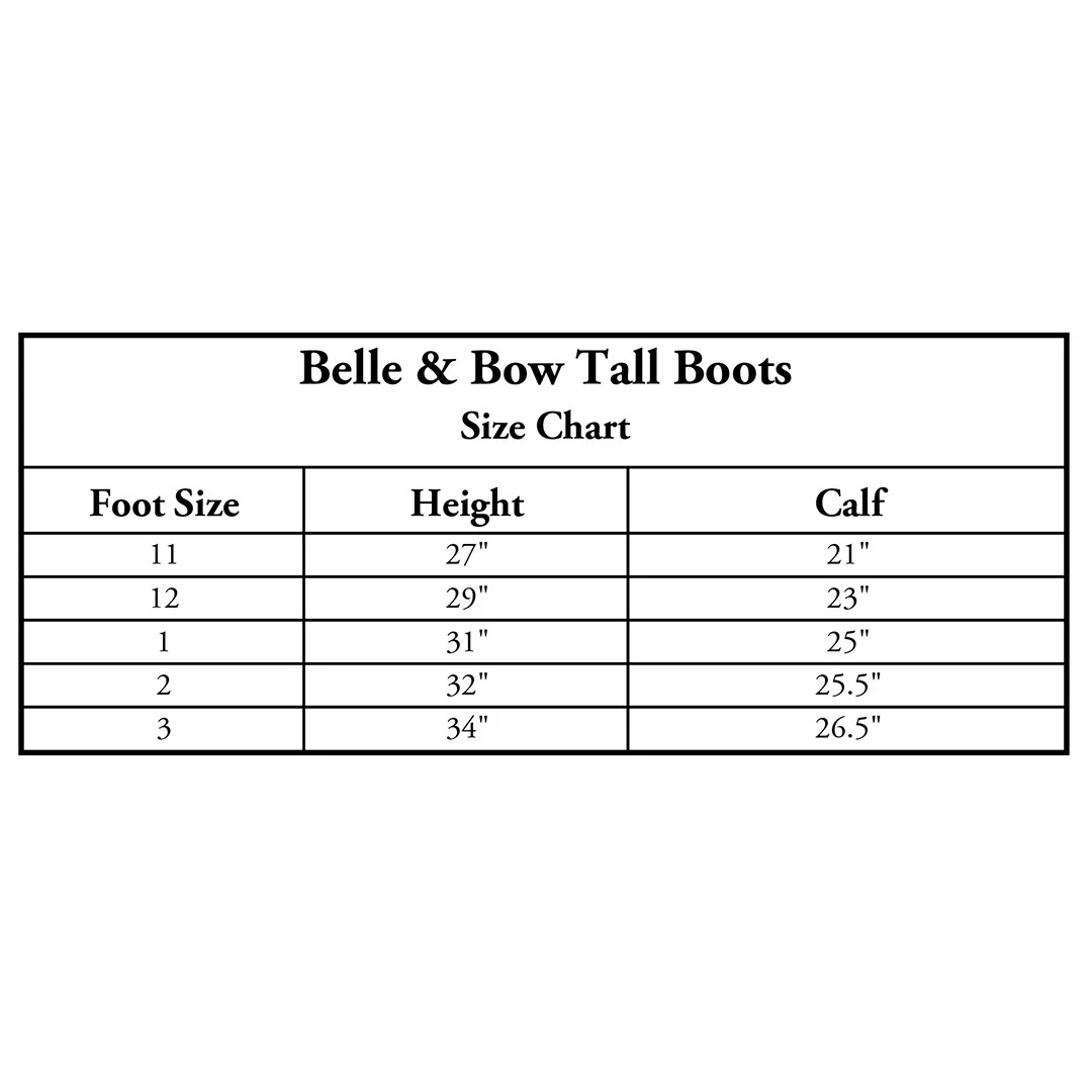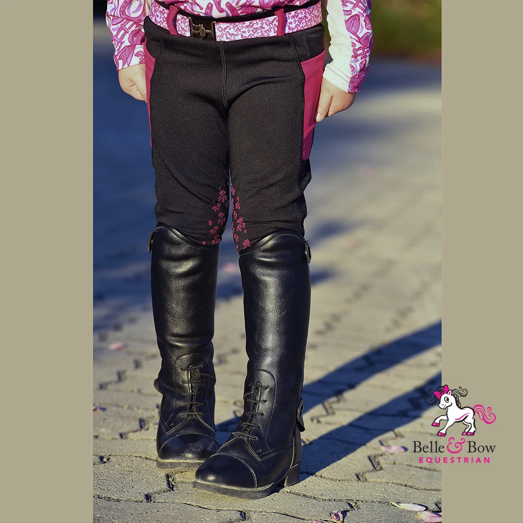 Belle & Bow has designed a tall field boot for kids that is super comfortable and beautiful to look at! These soft Faux leather boots have all the classic details including a full length back zipper with keepers and snaps at top and bottom and a plain toe cap. They also feature a full length elastic panel alongside the zipper and elasticized laces with 4 sets of eyelets.