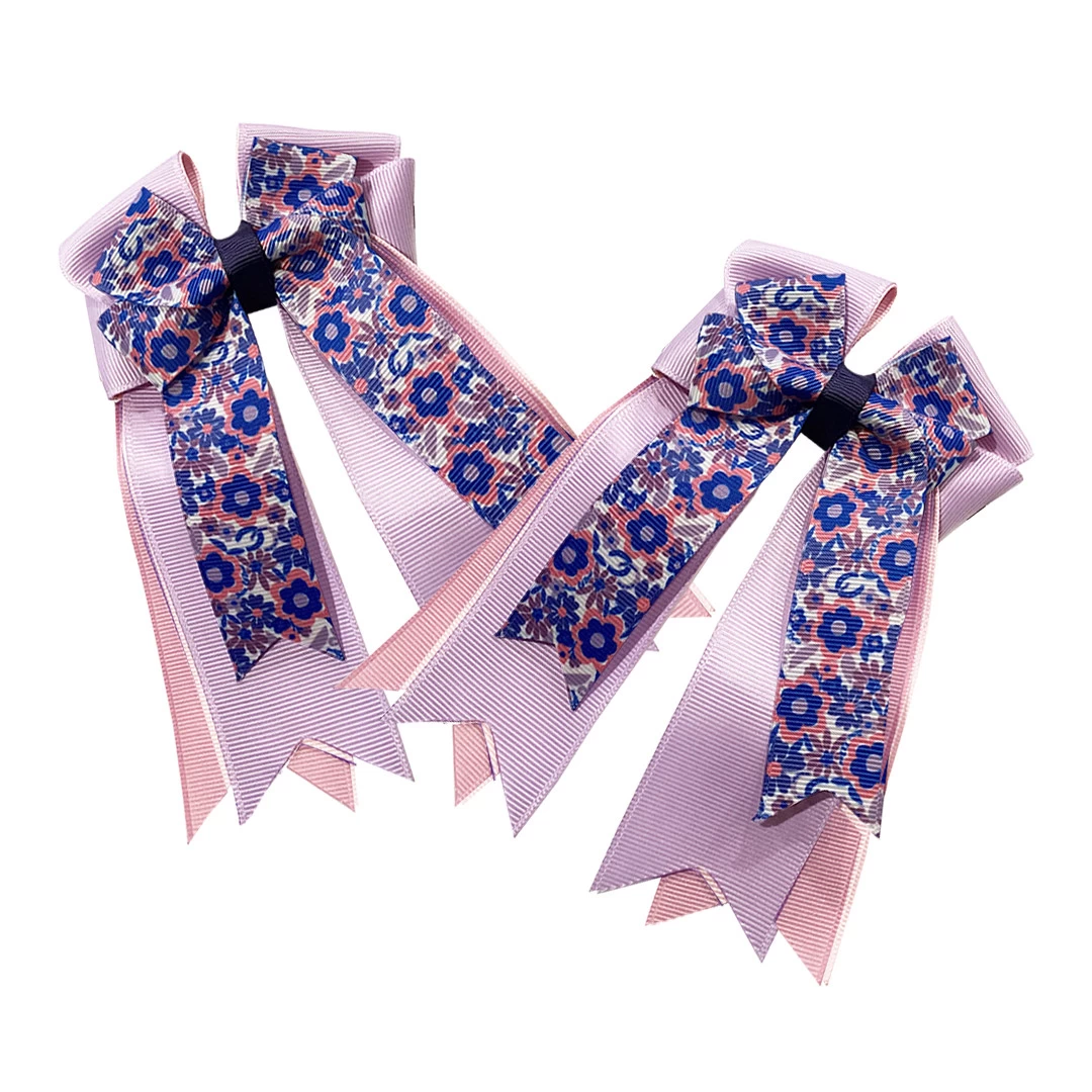 Color: Flower Power pattern and lavender/Pink/Navy ribbons