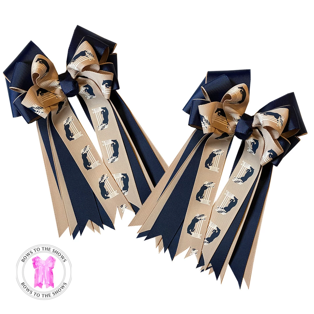 Bows to the Shows Hair Bows are handcrafted in the USA from high-quality grosgrain and satin ribbons. They’re designed and made in Ocala, FL by a Horse Show Farm that competes at AA rated and local unrated horse shows. These are high quality hair bows that can be worn in any show ring.