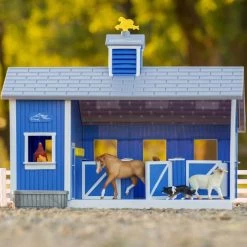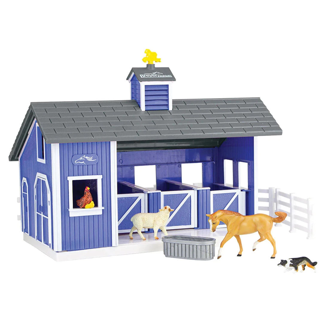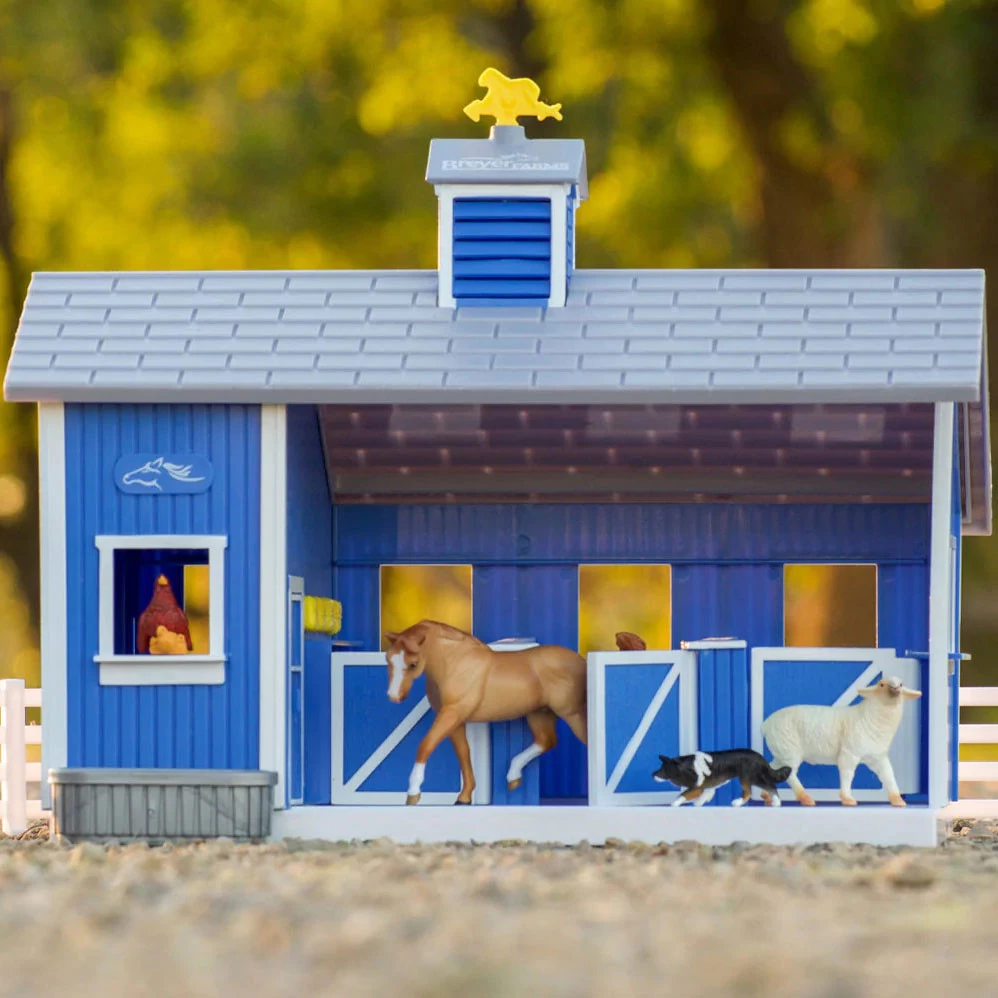 Breyer Farms™ has an exciting new playset – Home at the Barn! This beautiful blue, 3-stall barn comes complete with fencing, a dog, a sheep, a hen with chicks, a Stablemates horse, and water trough. We’re sure the youngest Breyer fans will have hours of fun playing and pretending that they’re on the farm!