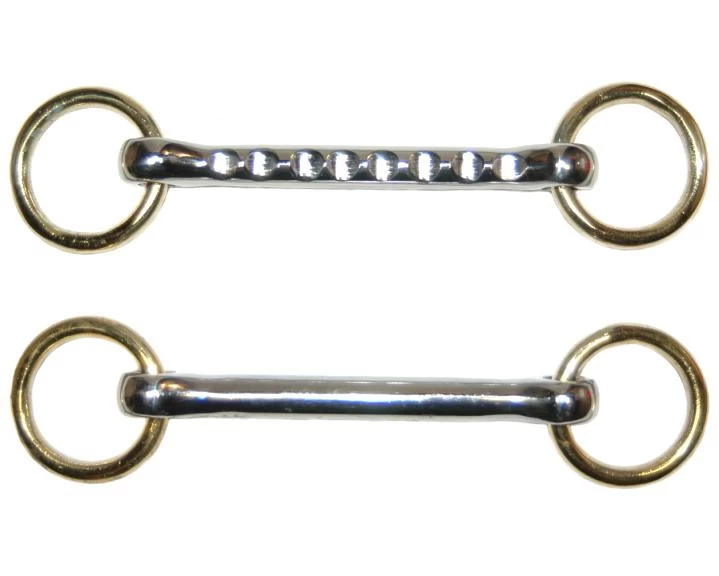 This is a good alternative to the Nylon In Hand Bit if you want a thinner mouthpiece. The loose rings are made of brass to match the In-Hand bridles.