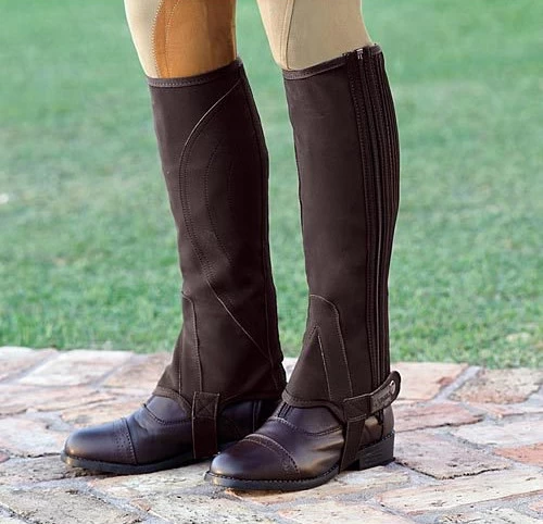The Dublin Easy Care Synthetic Half Chaps are nice looking, durable half chaps. They’re made from synthetic suede and have an elastic stretch calf for extra comfort.