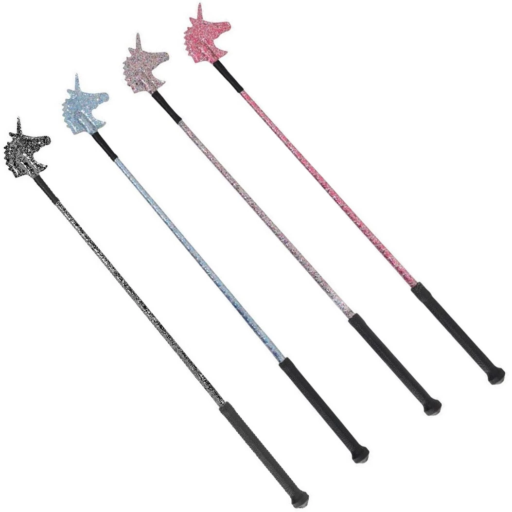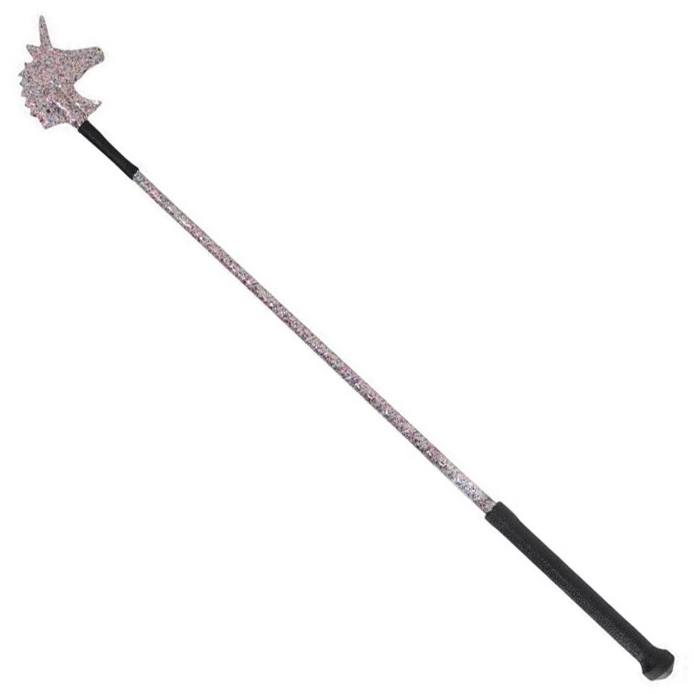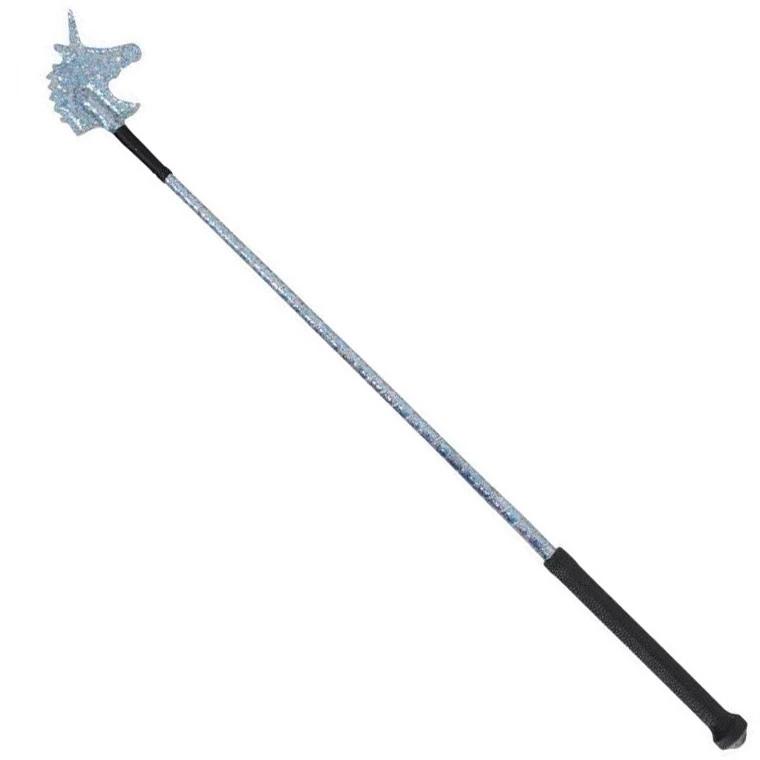 The crop features a unicorn silhouette for a popper, a hard rubber, grippy handle and a sparkle ribbon shaft.