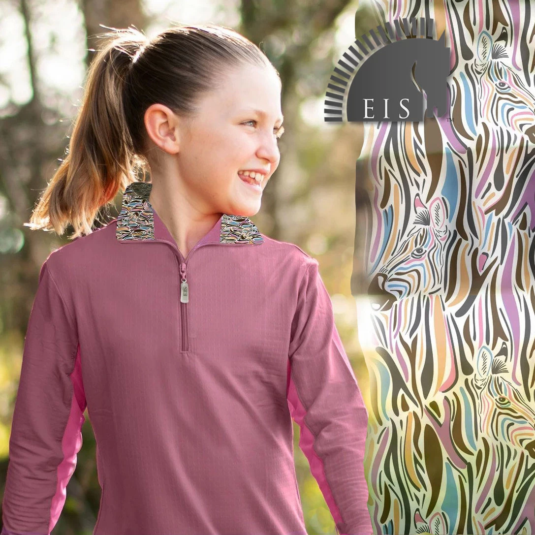 This striking shirt with a zebra print inside the collar is part of the new EIS Sarari Collection! Your younger riders will stay cool, comfortable and protected from the sun with a Cool shirt from EIS (Equi In Style).