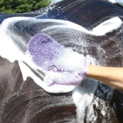 Use this mitt dry to curry, or remove sweat marks, or wet to bathe. Promotes natural shine—all while your horse thinks he’s just getting a massage.