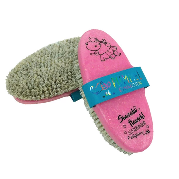 The Haas Roly-Poly Unicorn collection is a set of high quality, fun brushes made in Germany for kids. This brush has pure horsehair bristles, a leather handle and a poly back. The short medium, natural bristles will make your pony’s coat clean, dust-free and shiny!