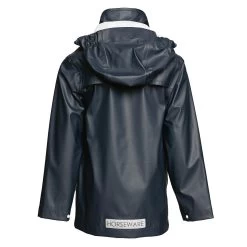The hooded jacket is waterproof with taped seams and also features a 2-way zipper, removeable hood, 2 zippered pockets and a reflective Horseware logo on the back. Other details include snaps on sleeves and a snapped storm flap over the upper part of the zipper. And it’s machine washable!