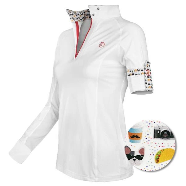 They are plush, silky, soft and utlra comfortable to provide you with unhindered movement during your ride. This show shirt features a zip and double snap closure for a classic looking show shirt in the ring.