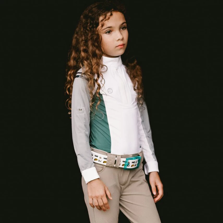 Made from Kathryn Lily’s ProAir Fabric, this shirt is cut and tailored in all the right places to present as an all white show shirt underneath a show coat or shadbelly!