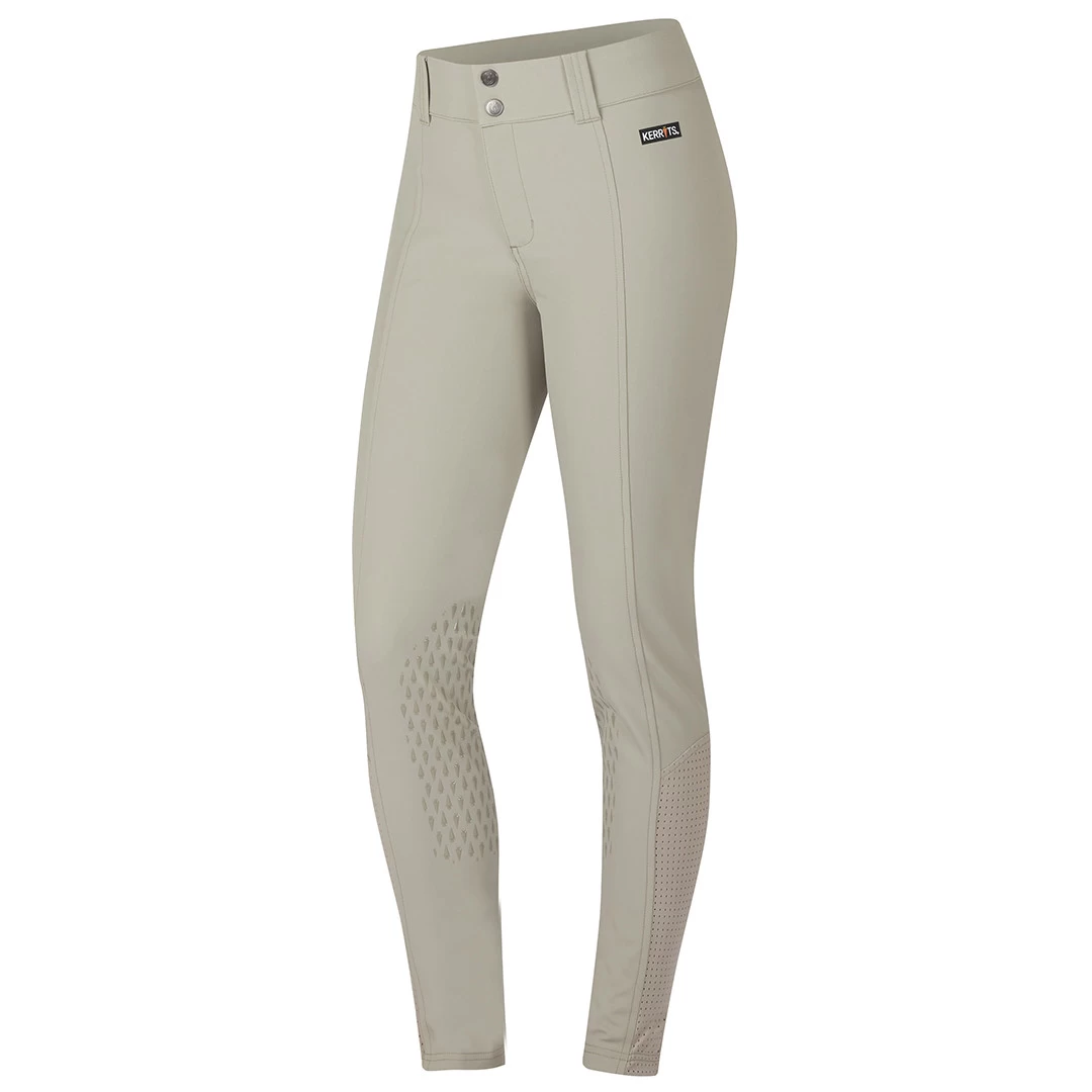 Kerrit Sticks™ silicone knee patches securely grip and flex, and an Ice Fil® mesh panel at the calf reduces bulk in a tall boot. Belt loops, a two-inch comfort waistband and a stain and dirt resistant exterior make them show season essentials. Mid Rise: Sits just below the belly button.
