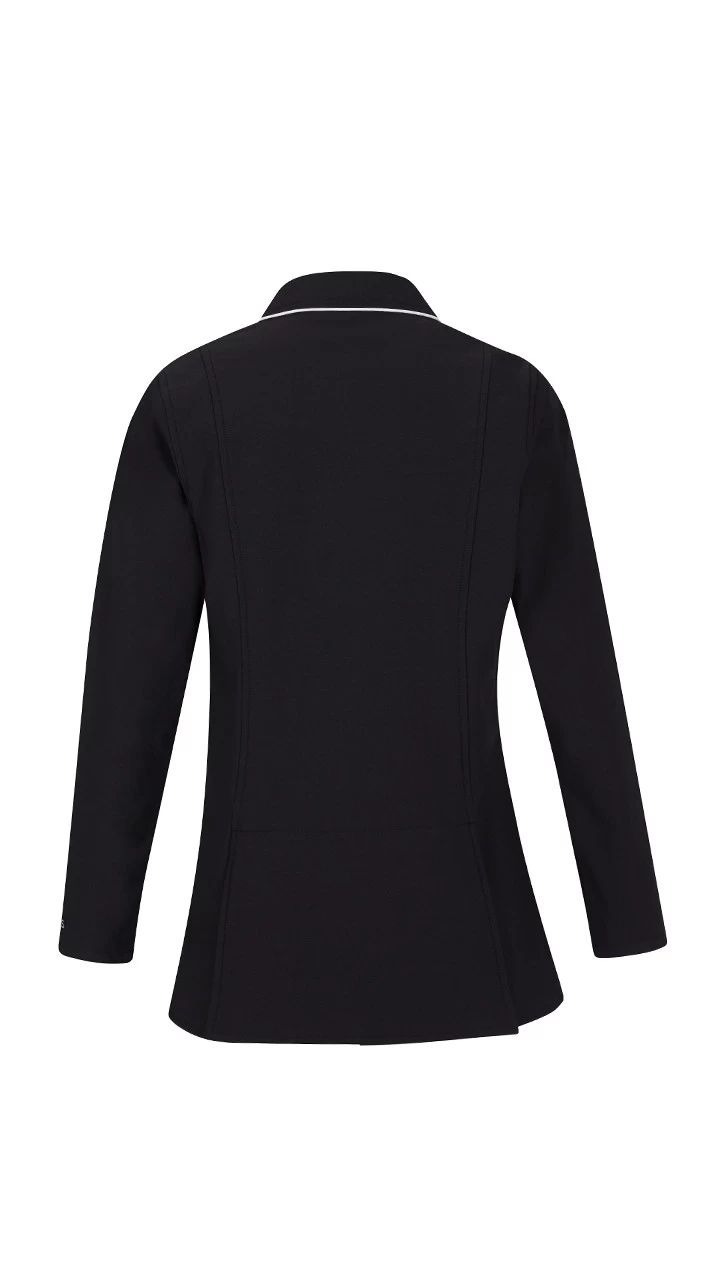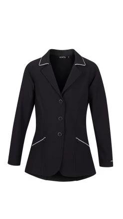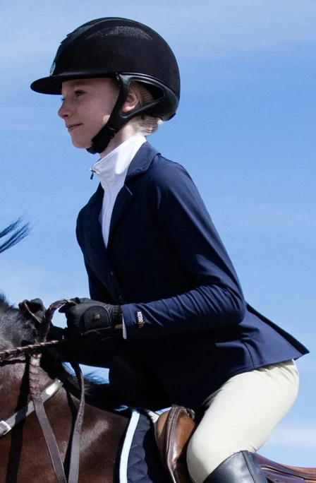 It has classic styling with a hidden front zip with three-snap closure for show ring confidence. This lightweight, breathable coat stretches for unrestricted riding—and growing.