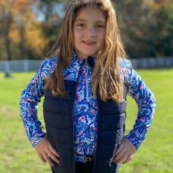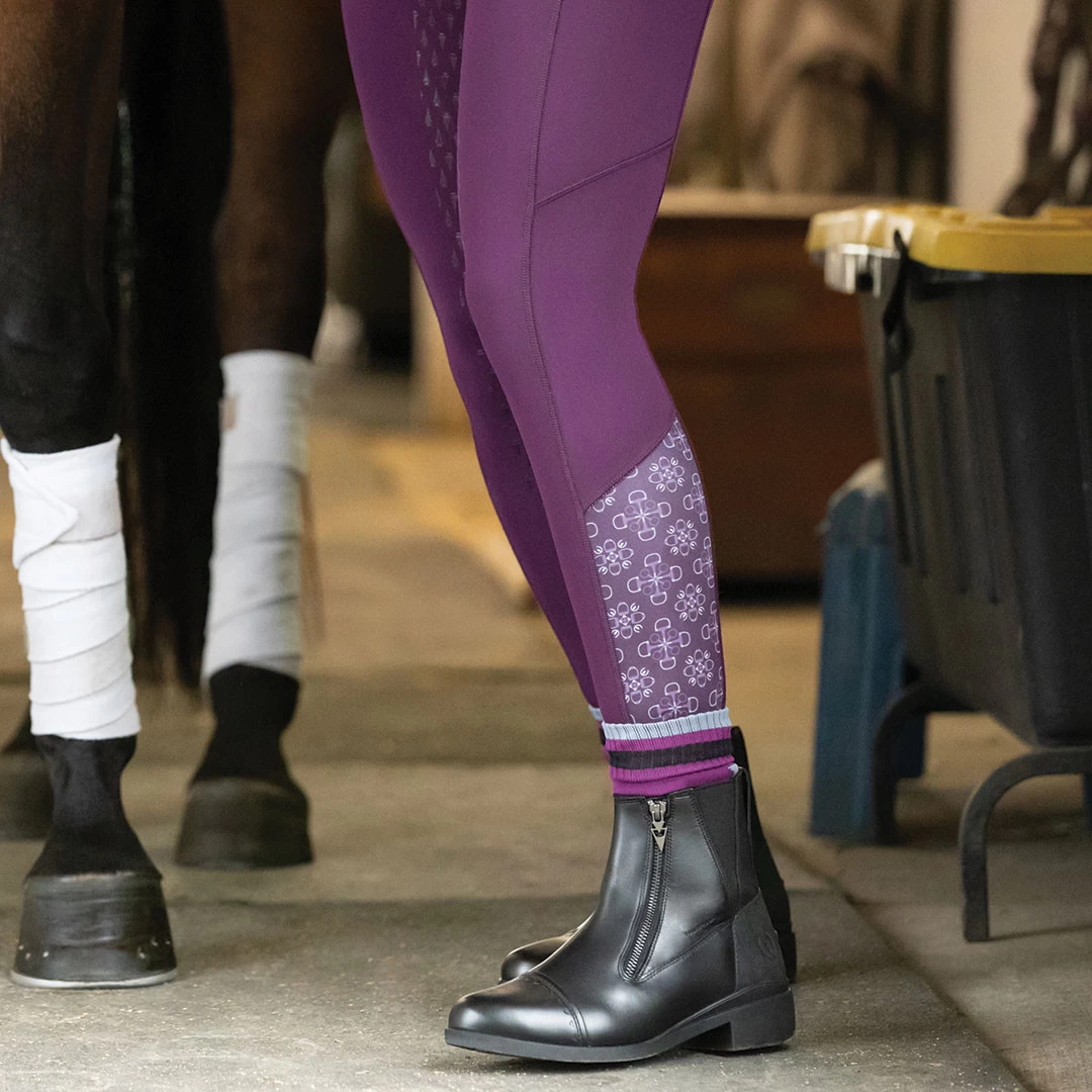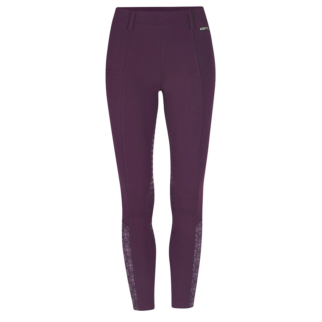 The lightly brushed interior insulates while supple Kerrit Sticks™ Silicone along the inner thigh and leg add grip. Fun contrast calf panels match their favorite prints. One side pocket holds treats for horse and rider.
