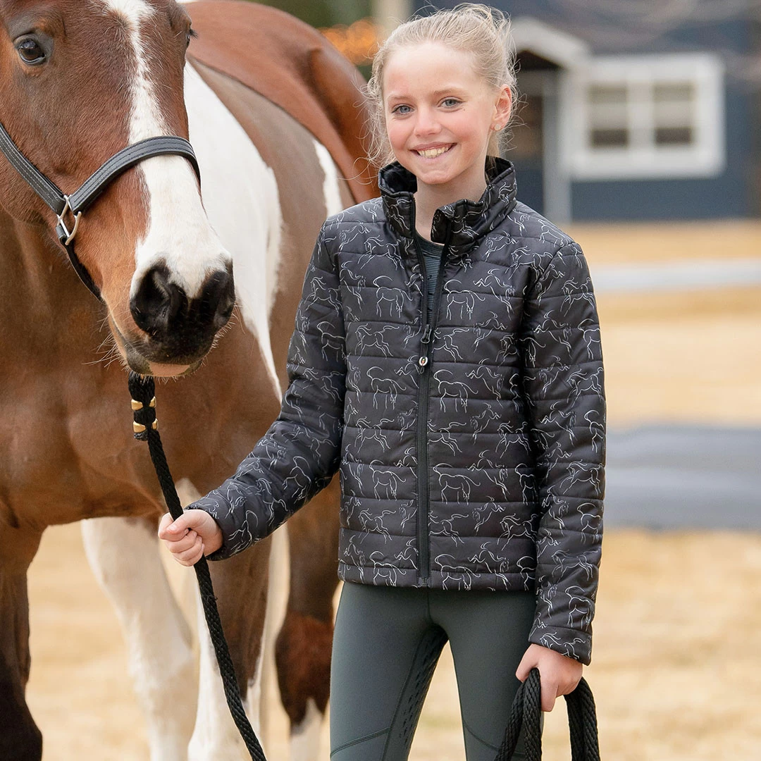 The dream jacket for girls who love to wrap themselves in horses, this 100-gram poly-loft quilted jacket is perfect for riding but will be worn everywhere.