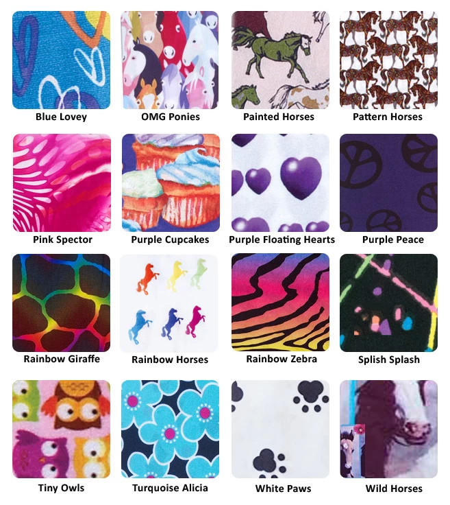 Row 3: Rainbow Giraffe, Rainbow Horses, Rainbow Zebra, Splish Splash
