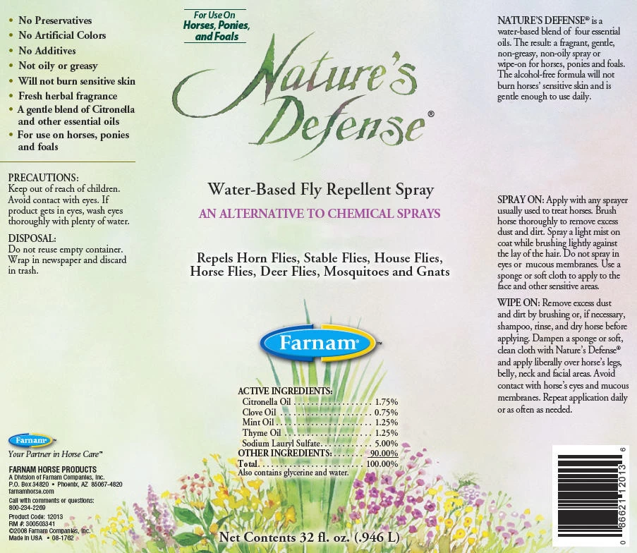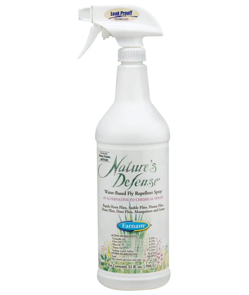 Farnam Natures DefenseÃî is a water-based blend of four essential oils. The result: a fragrant, gentle, non-greasy, non-oily spray or wipe-on for horses, ponies and foals.