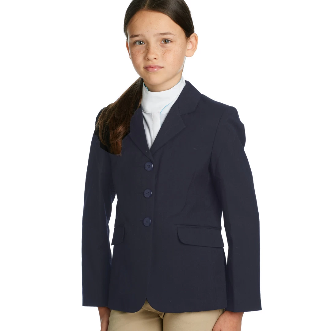 This lightweight show coat from Ovation is super stretchy for great comfort when riding. It has a hidden zipper to elimate button gapping but still has the traditional 3 buttons.