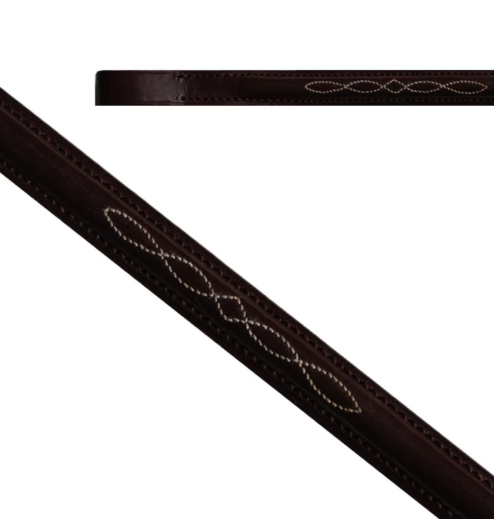 This fancy stitched leather browband is available in four sizes and features contrasting white stitching for a clean and classic look. Each browband is approximately 9/16″ in width.