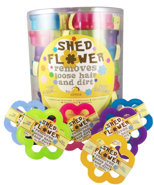Remove loose hair and dirt effortlessly with a Shed Flower from Epona. The distinctive flower shape fits in hands of all sizes and weighs just more than a fresh picked daisy.