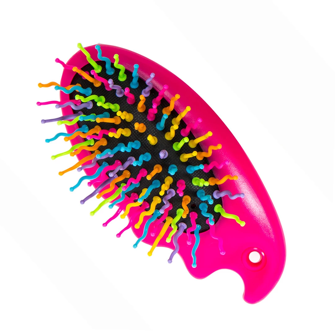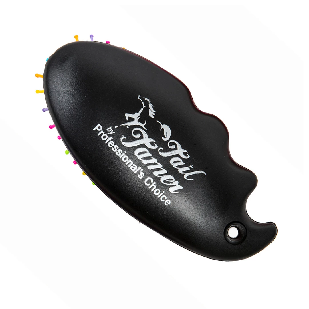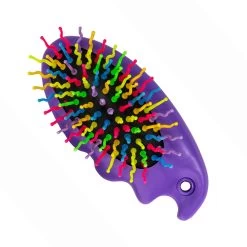 This pocket-sized mane brush has an easy-grip handle and fun, multi-colored bristles.