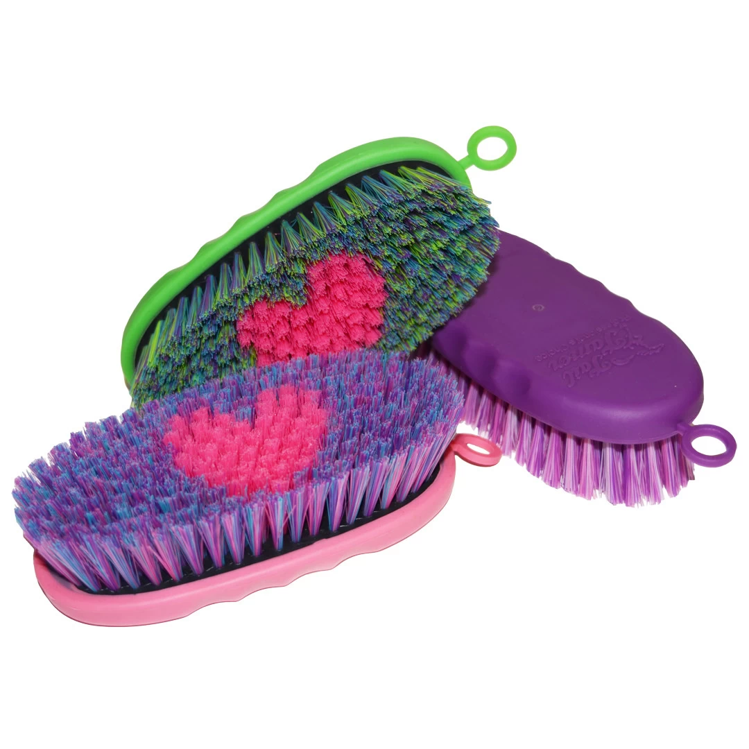 This tough little brush has colorful, poly bristles that are 1 inch long. A charming pink heart is in the center of each brush.