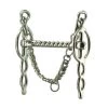 The brown nylon girth has double elastic on both ends for equalizing pressure, stainless steel roller buckles and a center D-ring for adding additional training attachments.