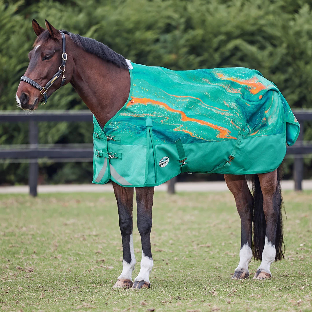 The WeatherBeeta ComFiTec Plus Dynamic II Medium has lots of great features, including a super strong and durable 1200 denier triple weave outer shell with repel shell coating that’s waterproof and breathable. The magical marble swirl pattern looks adorable on ponies!