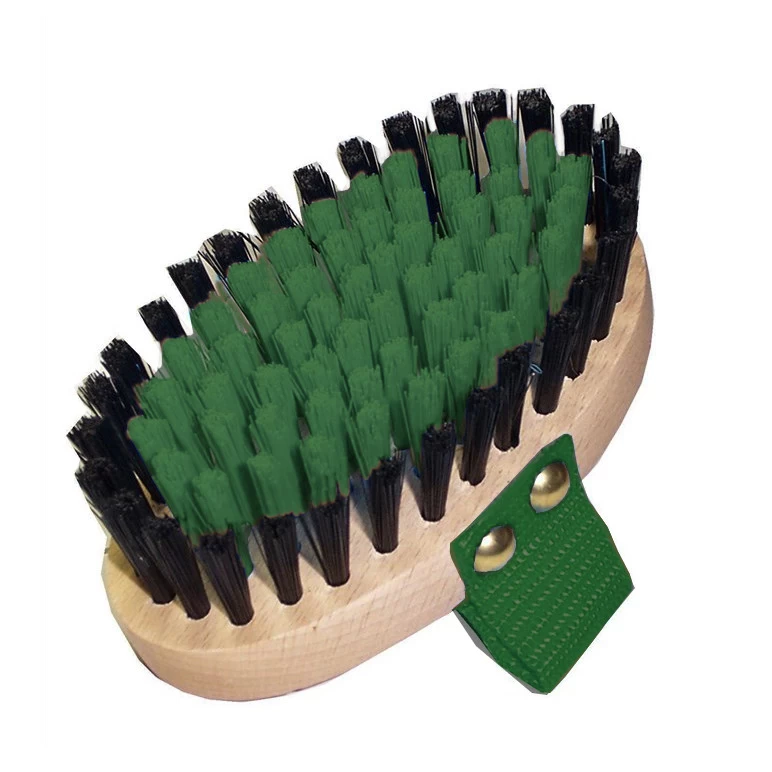 The black, 1″ PVC bristles surround the colored bristles in the center. Available colors are Blue, Hunter Green and Purple.